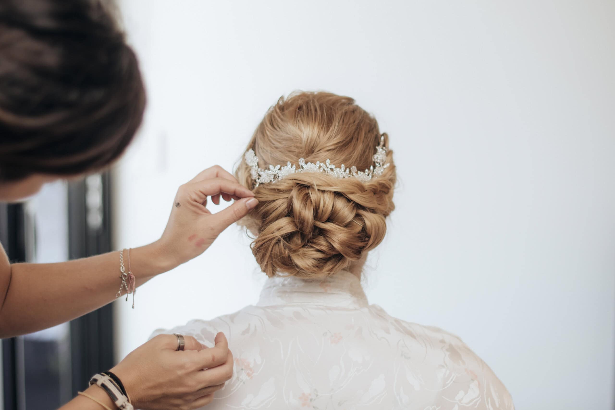 3. Hairstyle: Another essential part of choosing a veil is your hairstyle. If you’re opting for an updo, the style of the veil will differ drastically versus wearing your hair down. If you have short hair, a birdcage look may be just the ticket. That finely crafted chignon may pair well with a cathedral style, depending on your overall look. One of the best ways to get this accessory the right length is to have your height measured so you know precisely where the veil falls on your frame.